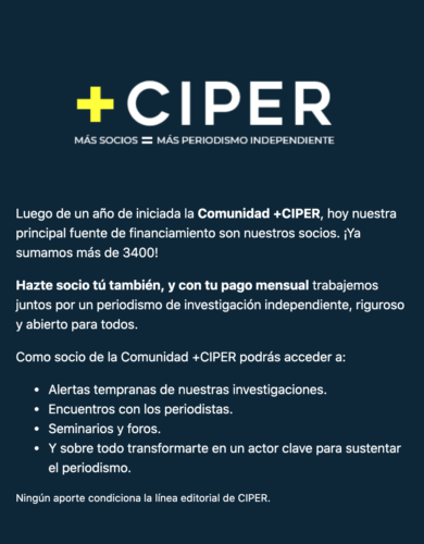 Ante su nueva realidad económica, sin el financiamiento de su mecenas, el equipo de CIPER adoptó este enfoque en el diseño de su programa de membresías: “Hazte socio de CIPER”. Para ello, partieron de comunicar a sus lectores, de forma transparente, “la realidad crítica” por la que estaban atravesando.