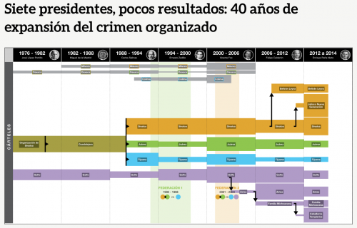 “La experiencia de Poderopedia nos permitió mirar a los cárteles, hasta cierto punto, como poderosas organizaciones comerciales con influencia en los asuntos públicos del país. Por ello, para explicar la evolución del crimen organizado, parte de los elementos tecnológicos de Poderopedia se adaptaron a Narcodata”, recuerda Dulce Ramos.