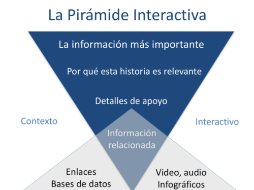 Las escuelas de periodismo enseñaron por décadas acerca de la “pirámide invertida”. Ahora, esta se complementa con elementos anexos como transmedia, enlaces, vídeos, infográficos, juegos, bases de datos, entre otros, que dan mayor contexto e interactividad a la noticia. Janine la denomina la “pirámide interactiva”.
