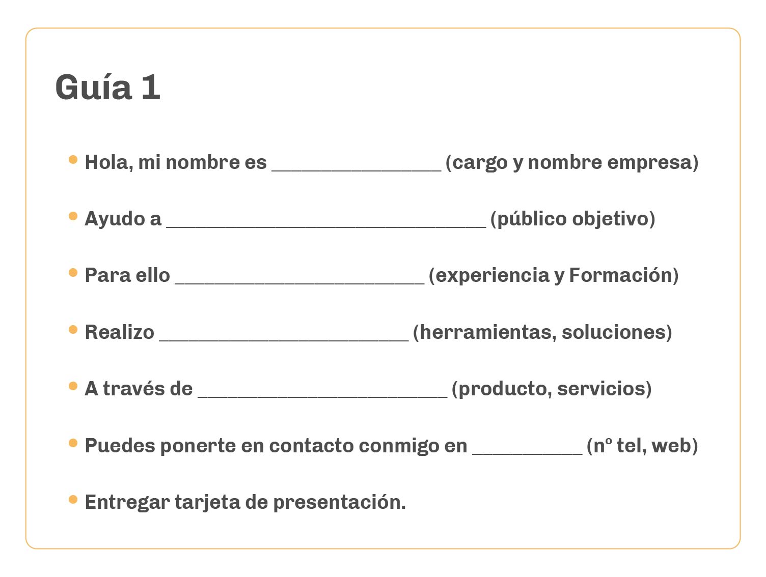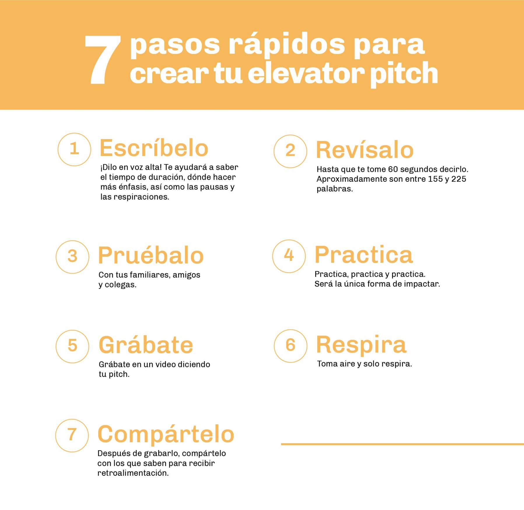 Como su nombre lo indica, quienes desarrollan esta habilidad deben ser capaces de presentar su producto, marca o servicio bajo una idea de negocio en lo que duraría un recorrido en elevador. Alrededor de 60 segundos. Si tienes poco tiempo, debes ser concreto y directo.