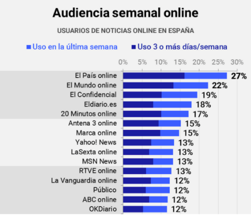 Tenemos muchísimo más tráfico directo que la media. A diferencia de otros, tenemos un tráfico fortísimo en portada, y además de escritorio. Tenemos como todo el mundo más audiencia en móvil que en escritorio, pero a diferencia de casi todos los medios digitales, somos casi un medio de papel en el sentido de que la marca es tan fuerte, está tan marcada, que la gente nos busca por marca. Tenemos un tráfico directo a portada brutal, muy por encima de lo normal. Y con mucho escritorio precisamente por eso, porque es gente que nos lee desde el escritorio, más que desde el móvil, cuando consulta qué están dando los periódicos. Y somos también potentes en redes, porque viralizamos muy bien, pero nuestra proporción de Facebook es menor que la normal.