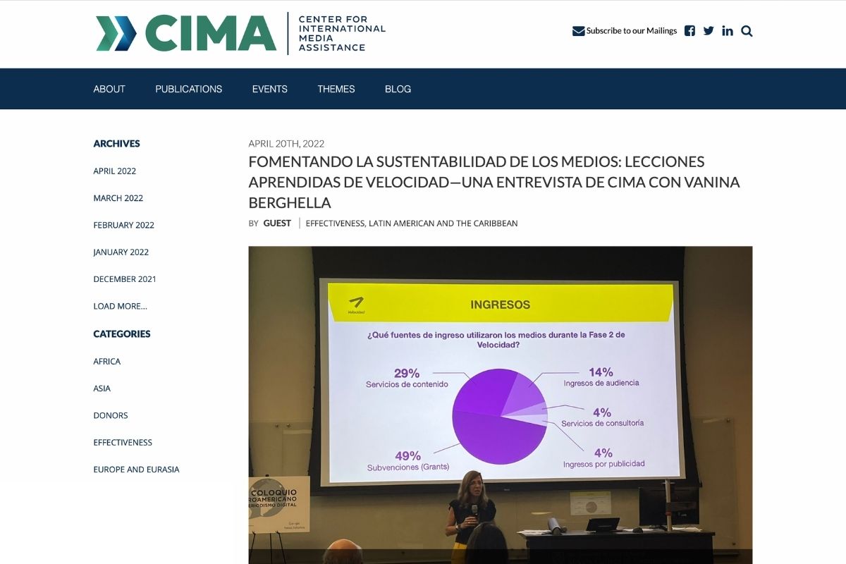 Fomentando la sustentabilidad de los medios: lecciones aprendidas de Velocidad