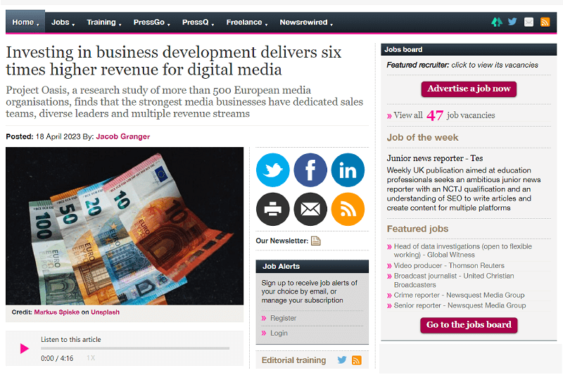 Investing in business development delivers six times higher revenue for digital media