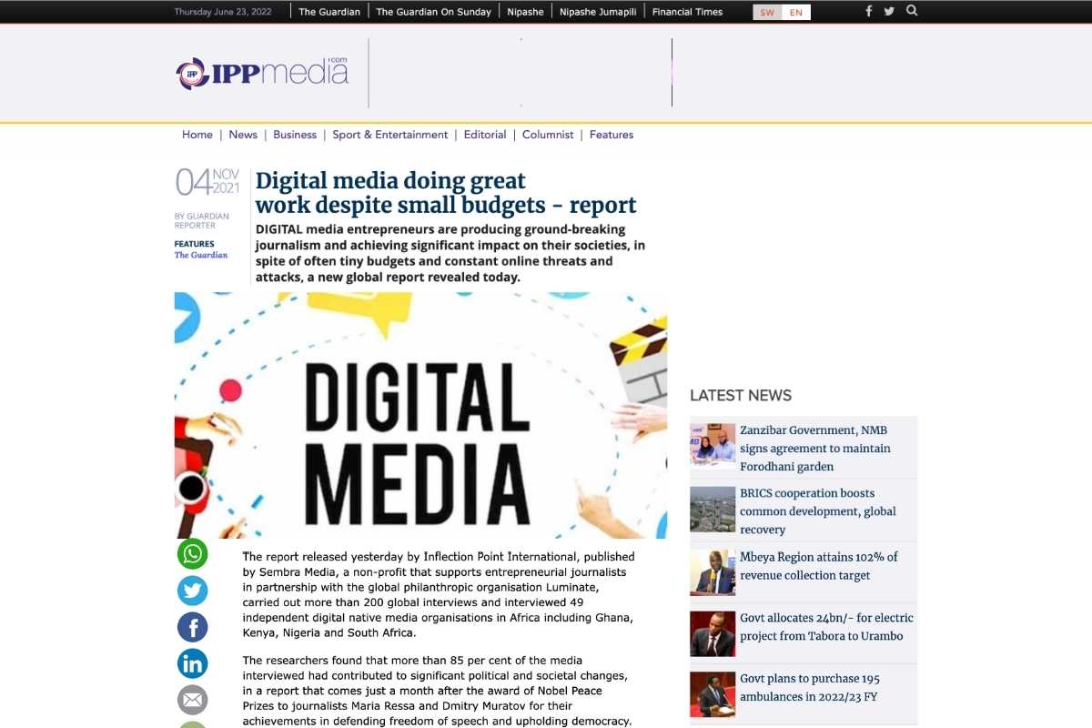 Inflection Point International: A Study of the Impact, Innovation, Threats, and Sustainability of Digital Media Entrepreneurs in Latin America, Southeast Asia, and Africa