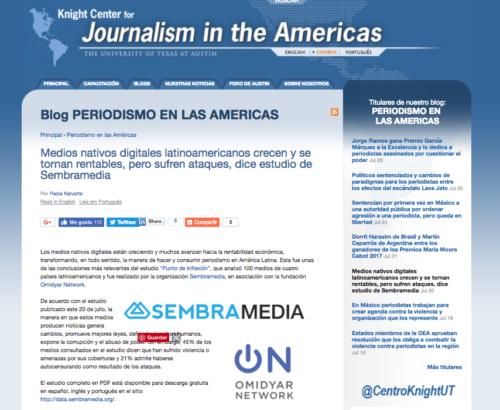 El blog del Centro Knight para Periodismo en las Américas destacó el impacto de los emprendimientos periodísticos, incluso bajo ataques