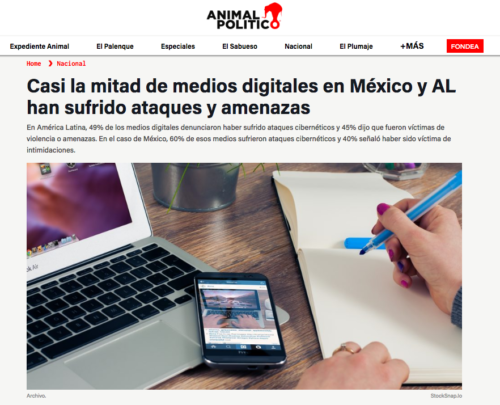 Animal Político resalta los ataques al periodismo reportados en Punto de Inflexión