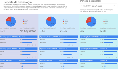 Aprende más sobre la tecnología que tus usuarios más valiosos están utilizando. Este reporte puede ofrecer a veces una mirada clave sobre las experiencias de usuario. Por ejemplo, si tus Visitantes Casuales son abrumadoramente móviles pero tus segmentos más valiosos están en desktop, es muy posible que estés ofreciendo una mala experiencia móvil y que los usuarios se estén yendo de ella. Las mismas discrepancias en cuanto a dispositivo, sistema operativo y buscador pueden aparecer y reflejar otros problemas. Todo en esta página, a excepción de las velocidades de carga, es un filtro.
